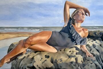 IN Emilia Momen’s new paintings, no one performs. Bodies stretch, recline, wander; they pause by the water or drift in its shallows, absorbed not in how they are seen, but in how they feel.