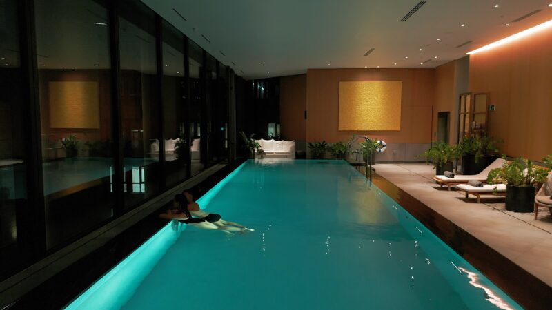 Afterwards, I wander through the wellness area, pausing in the sauna, lingering in the charcoal-infused steam room, and finally stepping into the infinity pool. The water stretches toward the skyline, its glassy surface reflecting London’s rooftops, and for a moment, the city outside feels impossibly distant. Every breath feels fuller, every movement lighter, as if the hotel itself is coaxing me into stillness.