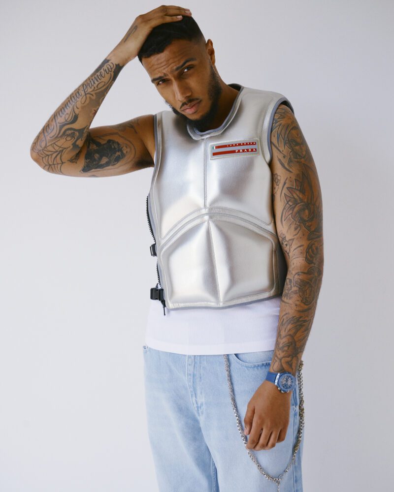 His first footsteps onto the scene happened back in 2011 under the stage names Looney and Loonz, releasing homemade tracks on Soundcloud and slowly forging his own sonic path through the noise. Looking at the artist now, he feels like someone who has already lived multiple lifetimes – pirate radio prophet, UK chart assassin and fashion’s reluctant muse. There’s a duality to him. He’s been called a grime MC, a rapper and a pop star – but none of those labels suit him. A shapeshifter if you will.