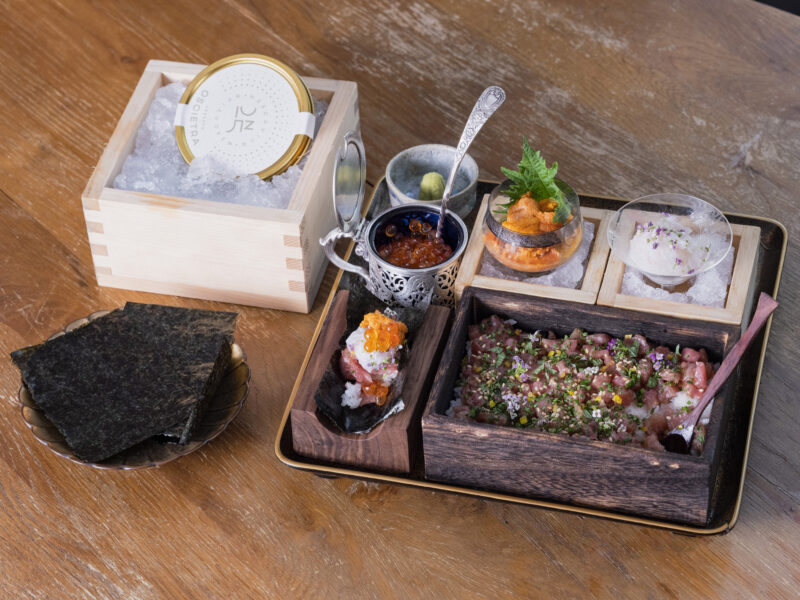 The defining moment of the evening comes with Kokin’s signature TEMAE Sushi, a hands-on dish built around woodfire-smoked sushi rice, cuts of Portugal wild bluefin tuna and ikura. Assembling the sushi ourselves feels intimate and playful, and the result is deeply satisfying. It is, without question, the highlight of the meal.