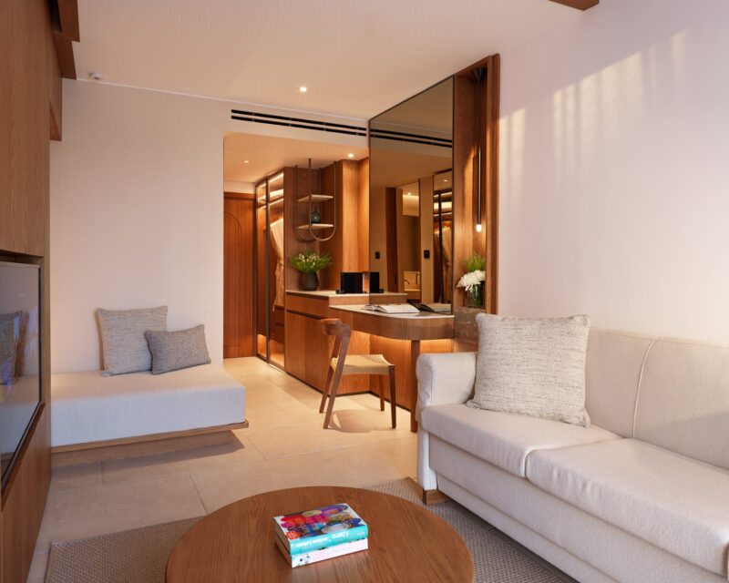 Following a €10 million reinvestment by Stademos Hotels, the renovation marks an exciting new chapter for the property. Curated by local architect Mr Eraklis Papachristou, the suites embrace a contemporary Mediterranean style, where clean lines meet natural surfaces and muted earthy tones.