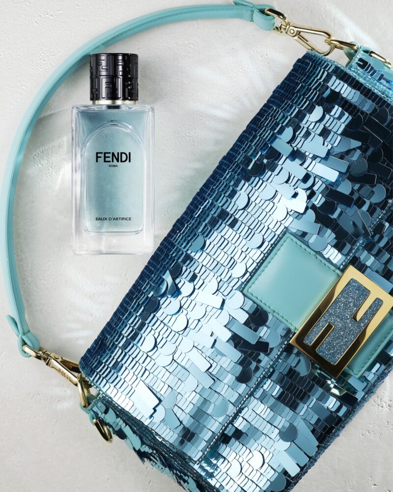 Eaux d’Artifice joins Fendi’s fragrance collection, launched last year as the house marked its centenary, with each scent personal and tied to a member of the Fendi family. There’s Perché No – a peppery tribute to Silvia Venturini Fendi’s free-spirited mindset – and La Baguette, a soft and nostalgic scent that channels the playfulness of Delfina’s sons.