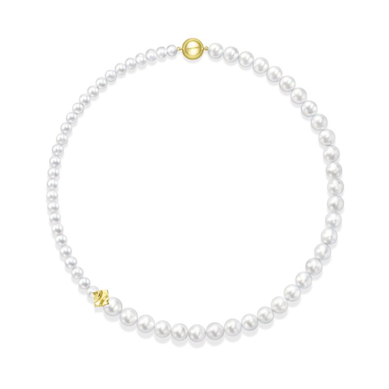 TASAKI – Square Leaf Necklace in 18k Yellow Gold, Akoya Pearls and South Sea pearls