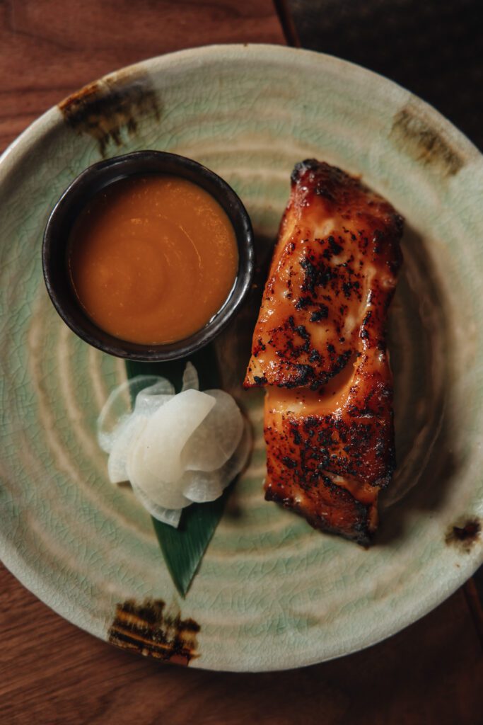 From the second I step inside, the city’s familiar buzz softens, giving way to something sleek, atmospheric and gently enigmatic. Its name translates to “Alligator Moon,” a reference to the mythical wani of Japanese lore, a symbolic clue to the restaurant’s polished yet enigmatic personality.