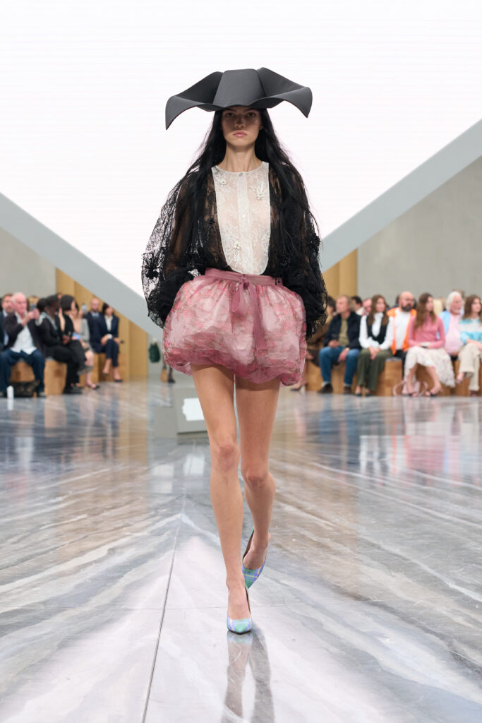 His most prominent nod to Christian Dior himself may have been an obvious choice, but he lifted and translated the layering of the Junon couture dress into variations of wearable mini dresses—showcasing the discipline of designing for tribute rather than replica.