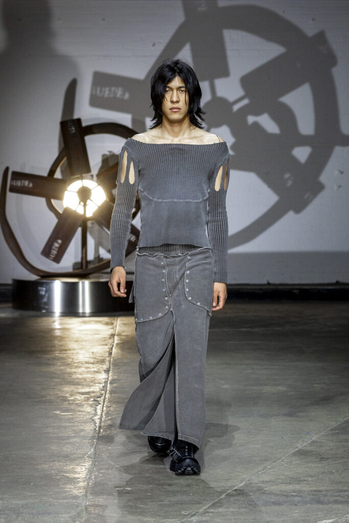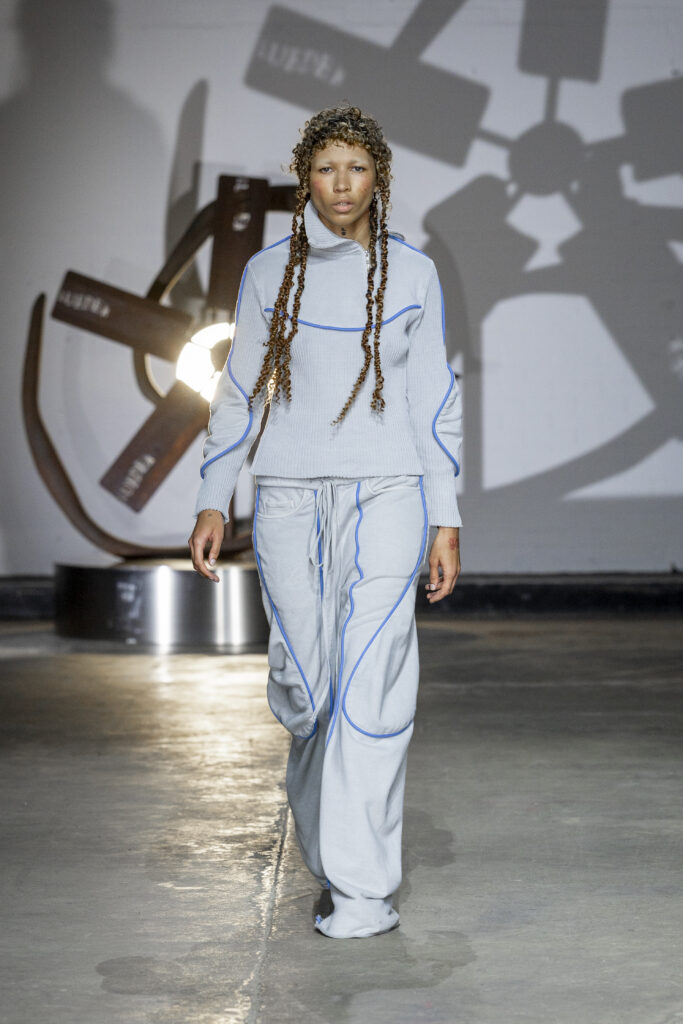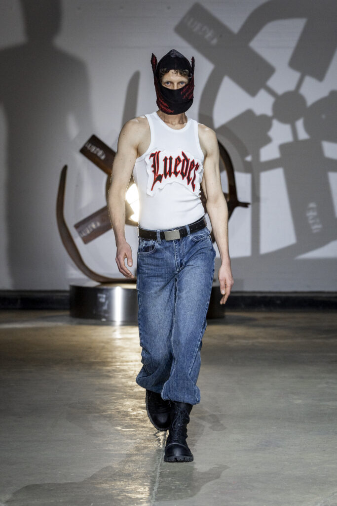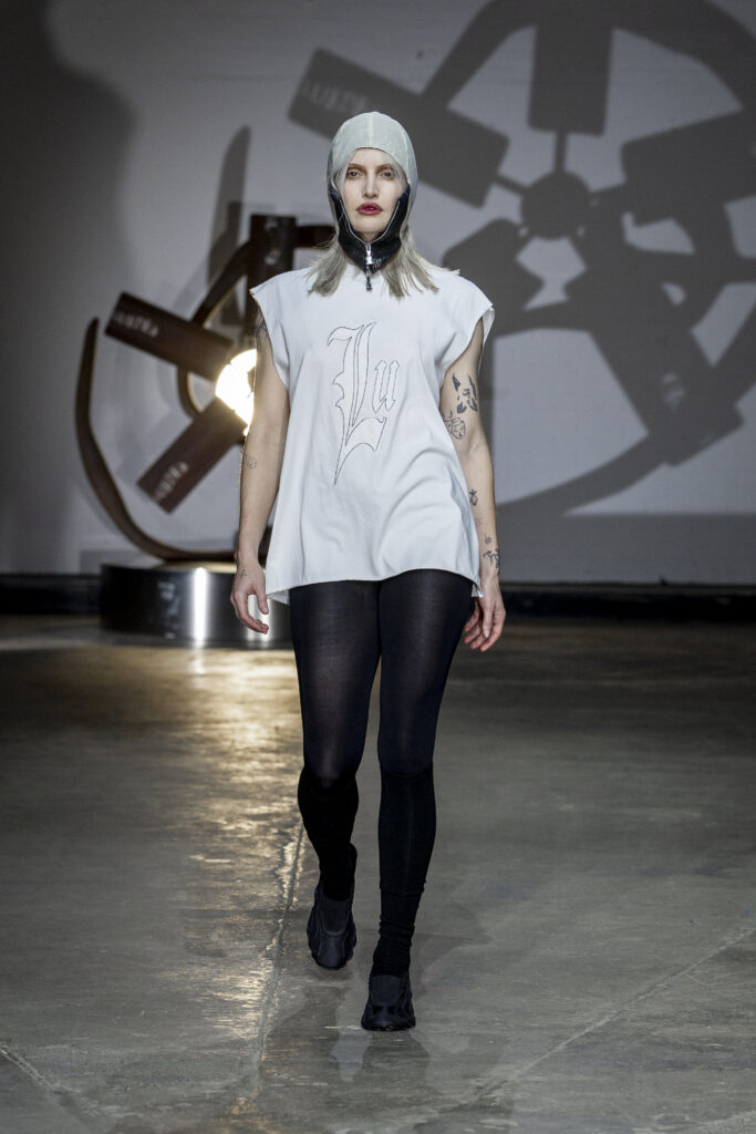 Music, composed by Danny Harle, amplified the show’s emotional energy, combining expansive, pulsating sounds with the garments’ intensity. Casting reflected LUEDER’s community ethos, bringing together musicians, models and creatives from London’s underground scene, including Lava La Rue and Princess Julia. American actress and activist Rose McGowan defiantly closed the show, embodying the collection’s message of empowerment.