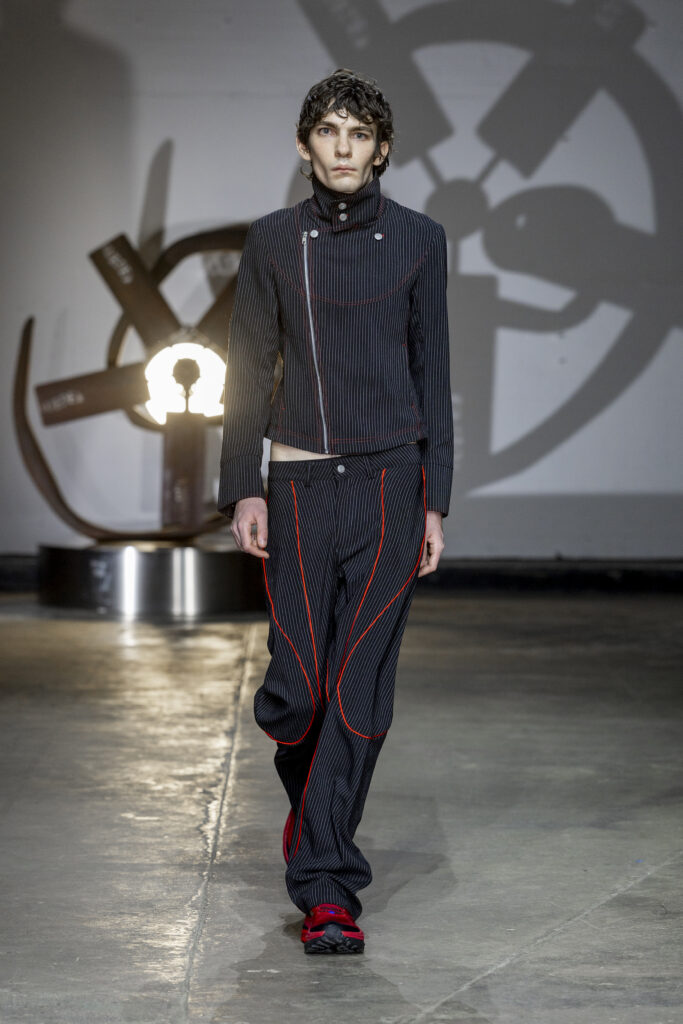 Drawing inspiration from Tobias Spichtig’s paintings, the film Powder and Mark Fisher’s book Ghosts of My Life, the collection conjured a world of tension and seduction, where memory, desire and experiments with radical living collide. Shapes were bold yet subversive, offering an angrier, sexier edge to LUEDER’s signature tailoring.
