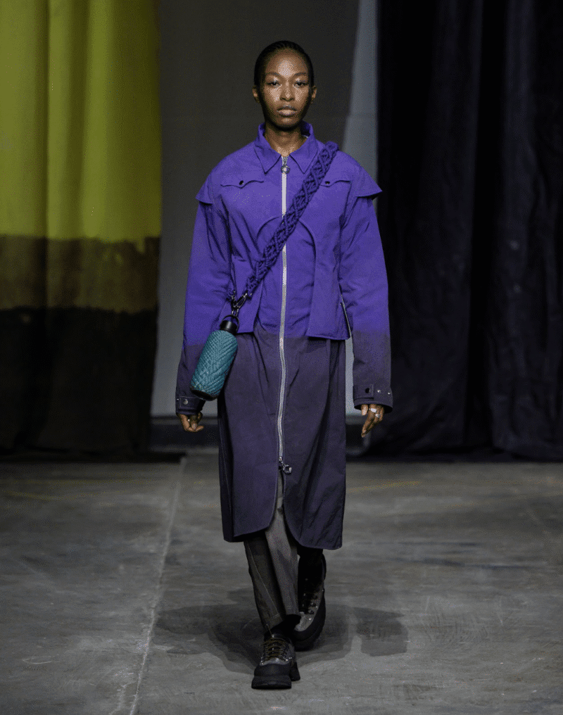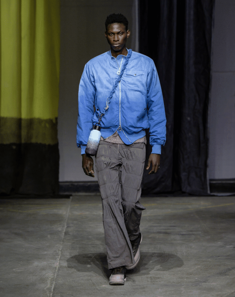 Charlie Constantinou turned Chilly’s reusable water bottles into wearable art through an innovative collaboration. Each 3D-printed sleeve and cross-body strap was hand-dyed to mirror the AW26 palette, while functional garments reflected the bottle’s practical design. The partnership fused London fashion and product innovation, bringing functionality to the runway.