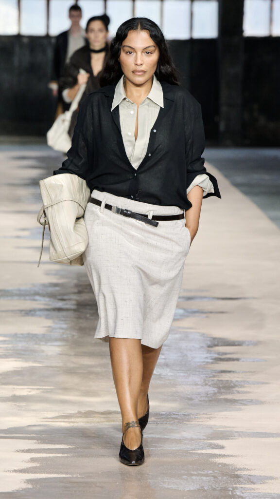 A further overarching theme was that of juxtapositions and contrasts: the overall vibe defies the traditional stiffness of corporate suiting, embracing a sense of contradiction associated with the show’s theme.