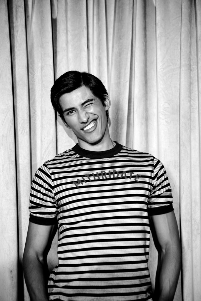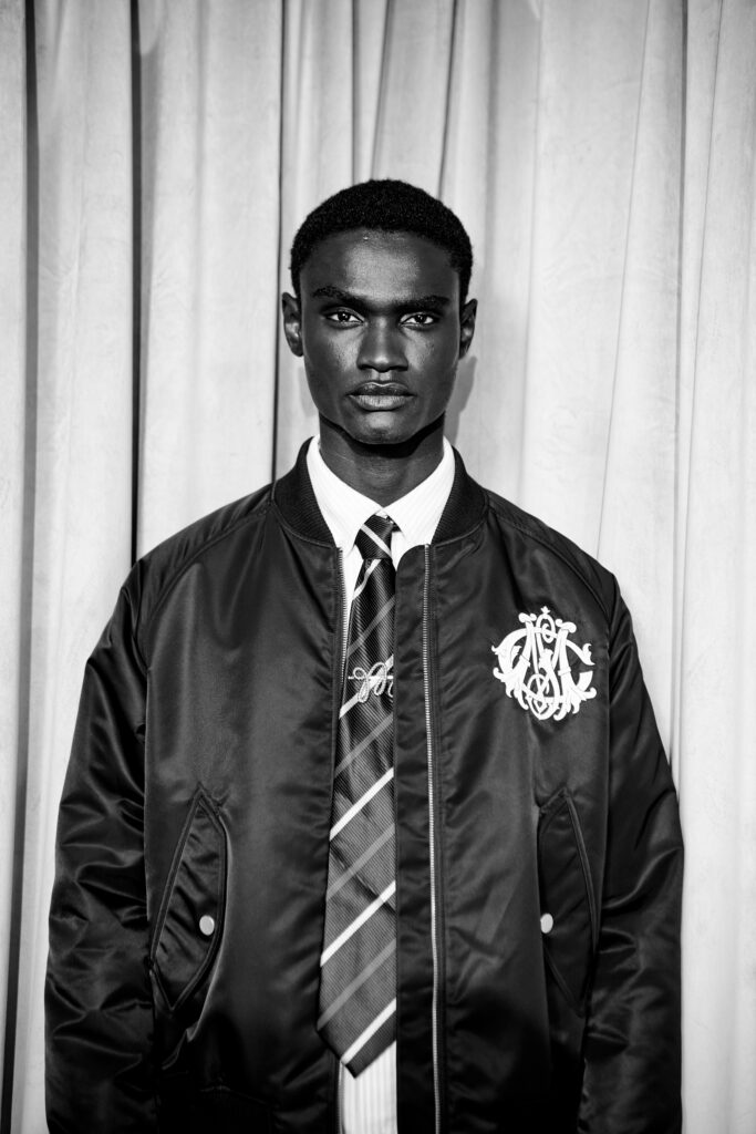 The capsule channels British tailoring codes – think stripes, wool outerwear, retro-fit T-shirts, and rugby polos – reimagined with an international sensibility. Signature striped scarves and boardroom shirting evolve into pieces that blur the line of aesthetics between stage-wear and streetwear, menswear and womenswear, performer and audience.