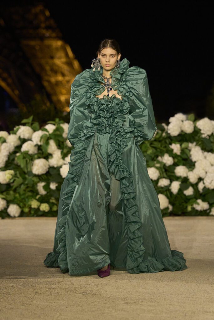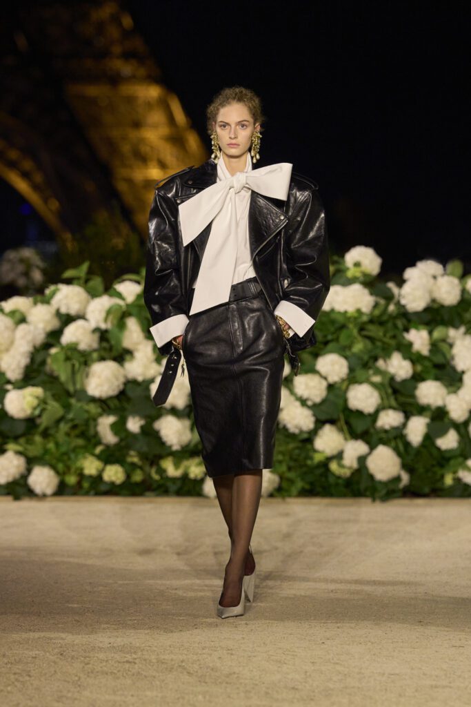 AS THE hour struck eight o’clock, the Eiffel Tower lit up the Trocadéro below, unveiling a striking arrangement of white hydrangeas that formed the YSL logo. It was here that Anthony Vaccarello decided to present the Spring/ Summer 2026 womenswear collection for Saint Laurent.