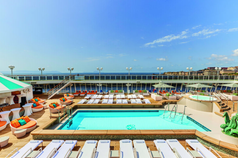 Our culinary journey continues across several other onboard venues. Marketplace tempts with a buffet for breakfast and lunchtime, while Waterside, the ship’s elegant main dining room, presents a daily changing menu in a sophisticated setting. The Bistro provides relaxed all-day dining and Trident Grill serves perfectly grilled burgers, adjacent to Scoops, the ship’s open-all-day artisanal ice cream bar. My favourite flavour was hazelnut gelato – a signature flavour from Badiani, the iconic Florentine gelateria founded in 1932.